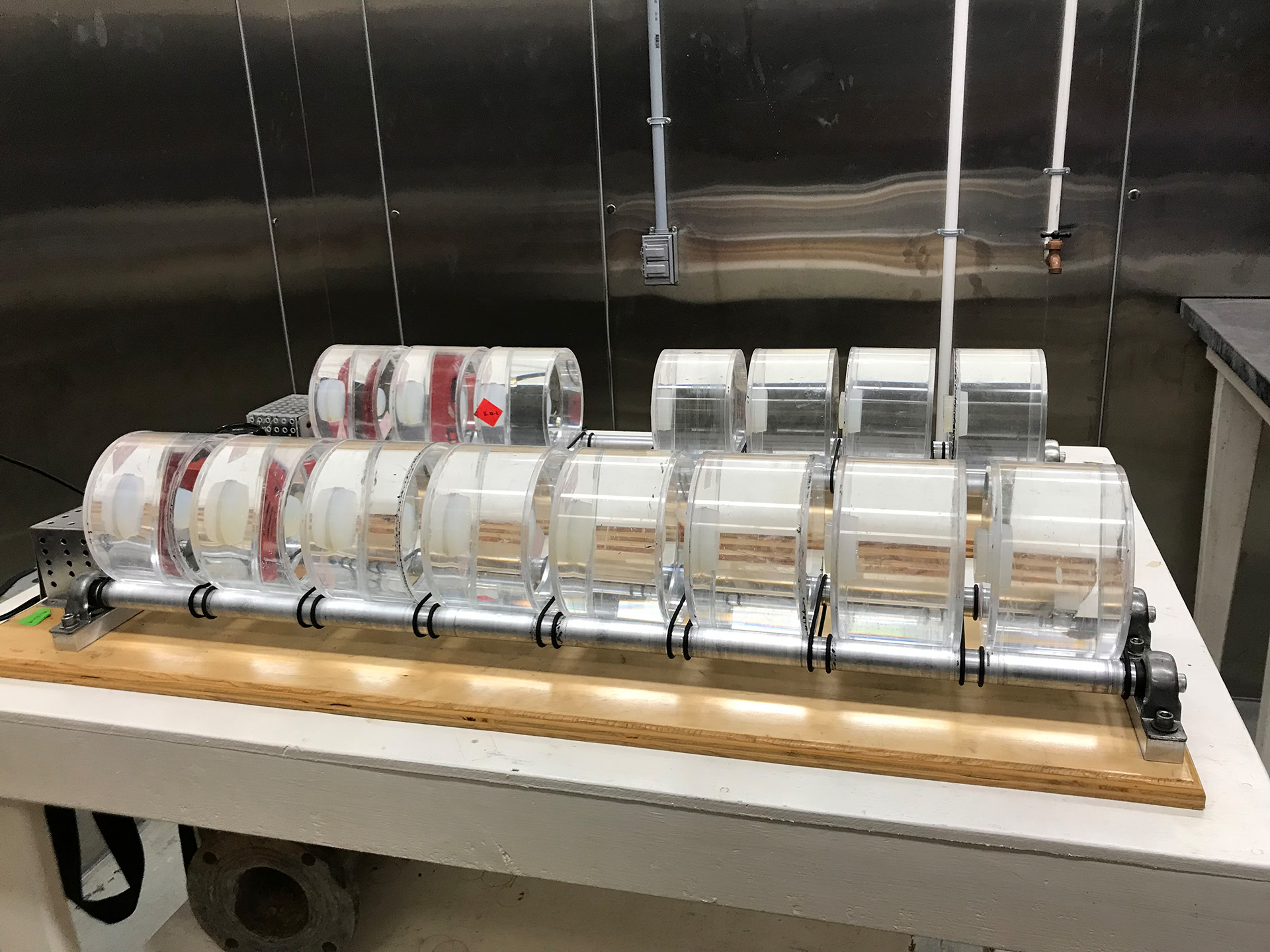 Im Labor untersuchen wir die Bildung von sinkenden Partikeln genauer. Wir tun dies, indem wir einzelne Arten von Phytoplankton oder Bakterien separat in Flaschen züchten; auf diese Weise können wir die Rolle jedes Organismus untersuchen. Im offenen Ozean gibt es ja eine große Vielzahl verschiederner Arten, was es nicht erlaubt, einzelne Organismen zu untersuchen. Wir züchten die Zellen in Flaschen und können ihre Bildung von TEP messen sowie die Größe und Häufigkeit der gebildeten Aggregate bestimmen. Dann füllen wir die Zellen in Rolltanks, die den offenen Ozean nachahmen. Wir finden, dass viele Arten des kleinsten Phytoplanktons TEP produzieren und Aggregate bilden. Nährstoffmangel erhöht in der Regel die TEP-Produktion und oft die Aggregatbildung, was wichtig ist, da viele Ozeanregionen nährstoffarm sind. Dies weist alles auf einen Mechanismus hin, der ihre Eingliederung in größere, sinkende Partikel und ihren Beitrag zum Kohlenstoffexport im Ozean ermöglicht. Wir haben sogar entdeckt, dass die Bakterien, von denen viele Partikel besiedeln, selbst sinkende Partikel bilden können, insbesondere wenn Ton hinzugefügt wird, der den Staub aus großen Wüstenregionen, zum Beispiel der Sahara, nachahmt.